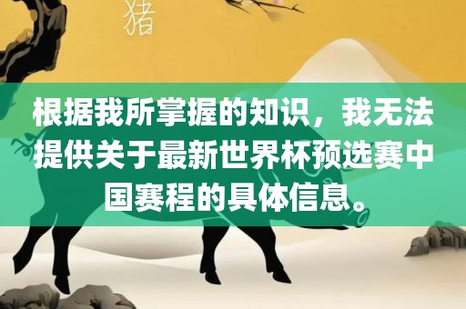 根据我所掌握的知识,我无法提供关于最新世界杯预选赛中国赛程的具体信息。