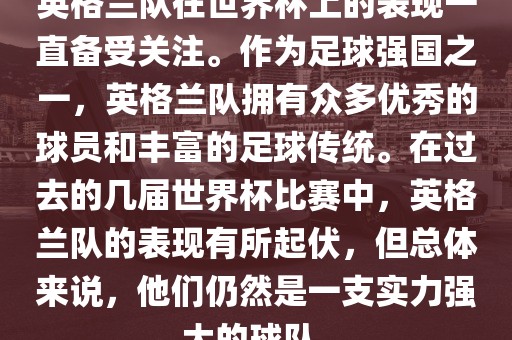英格兰队在世界杯上的表现一直备受关注。作为足球强国之一,英格兰队拥有众多优秀的球员和丰富的足球传统。在过去的几届世界杯比赛中,英格兰队的表现有所起伏,但总体来说,他们仍然是一支实力强大的球队。