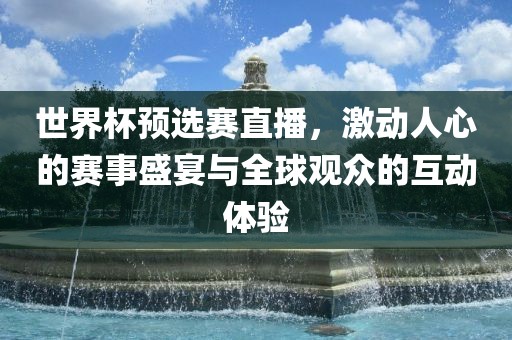 世界杯预选赛是每个足球迷翘首以盼的盛事,随着科技的进步,球迷们不再局限于现场观看比赛,而是可以通过各种直播平台,随时随地享受比赛的精彩瞬间,本文将围绕世界杯预选赛直播展开,带您领略这一激动人心的赛事盛宴,以及全球观众在这一独特体验中的互动感受。