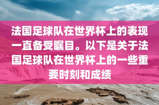 法国足球队在世界杯上的表现一直备受瞩目。以下是关于法国足球队在世界杯上的一些重要时刻和成绩