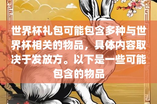 世界杯礼包可能包含多种与足球盛事相关的物品,具体内容因发放方而异。可能包含的物品包括世界杯吉祥物、纪念币、官方授权的商品、足球、球衣、比赛门票等。这些物品都具有收藏价值和纪念意义,让球迷们更好地感受世界杯的氛围和精彩瞬间。摘要字数控制在100-200字以内。