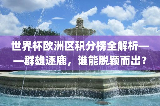 随着世界杯的临近,各大洲的球队都在紧张备战,其中欧洲区的竞争尤为激烈,作为传统足球强区,欧洲各国在世界杯上的表现一直备受关注,本文将为您带来世界杯欧洲区积分榜的全面解析,探究各支球队的实力状态,以及他们能否在世界杯赛场上脱颖而出。
