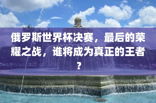 俄罗斯世界杯决赛即将拉开帷幕,这是一场充满激情与荣耀的较量,让我们共同期待这场足球盛宴的巅峰对决,见证最后的荣耀之战,无论结果如何,我们都应该为参与比赛的球员们鼓掌,为他们的努力和付出致敬,让我们一同享受这场足球盛宴,共同见证谁将成为真正的王者!