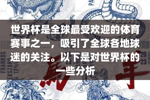 世界杯是全球最受欢迎的体育赛事之一,吸引了全球各地球迷的关注。以下是对世界杯的一些分析