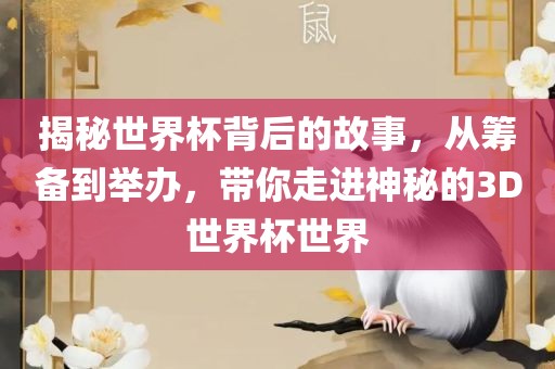世界杯是全球瞩目的盛事,背后隐藏着许多不为人知的故事,本文将带你走进神秘的3D世界杯世界,从筹备到举办,带你了解世界杯背后的故事,让我们一起揭开这场足球盛宴的神秘面纱吧!