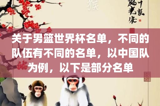 关于男篮世界杯名单,中国队公布了部分名单。不同队伍有不同的名单,竞争激烈。具体名单如下(此处省略具体队员名字),期待他们在世界杯上的表现。